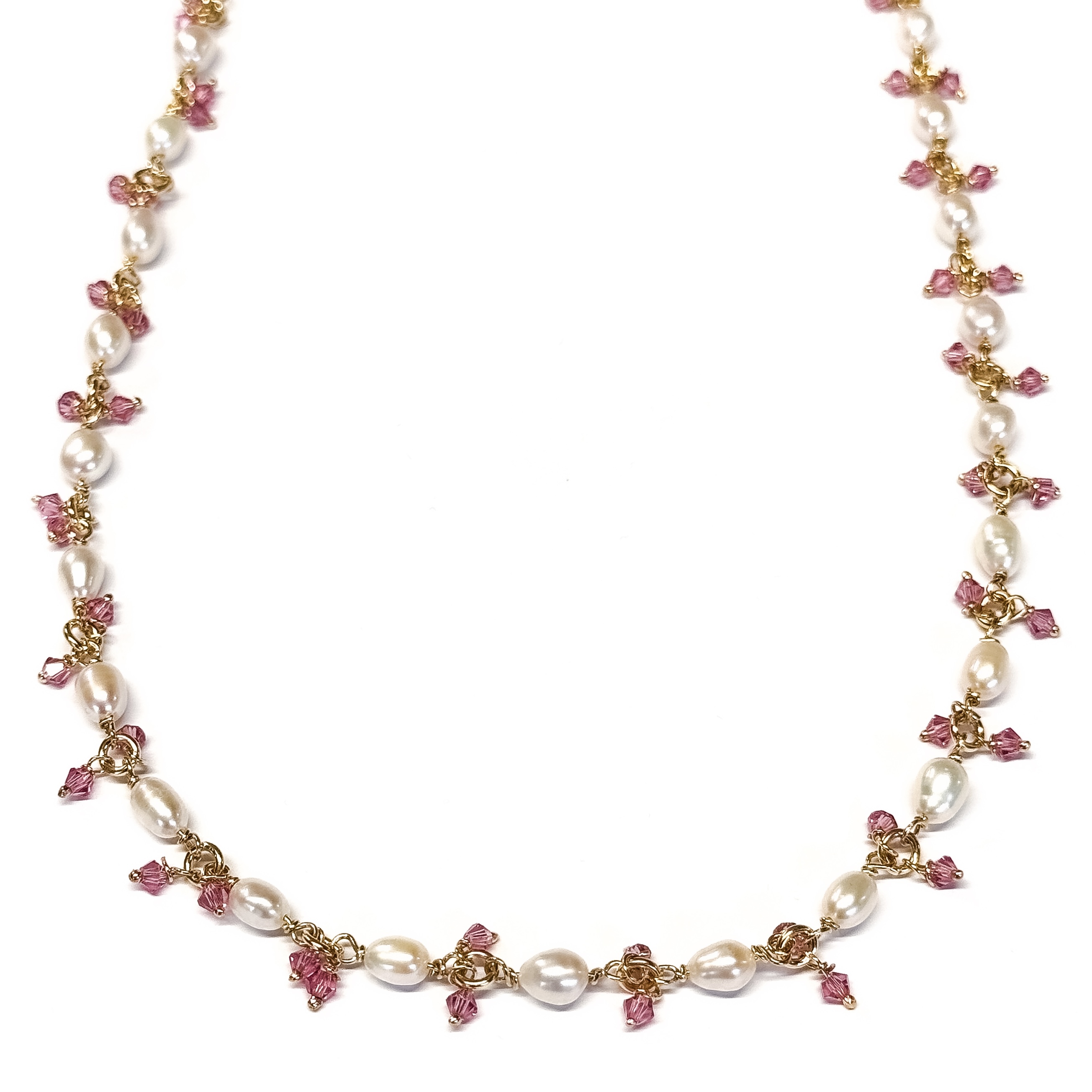Επιχρυσωμένο κολιέ απο ασήμι με πέτρες ζιργκόν και μαργαριτάρια γνήσια