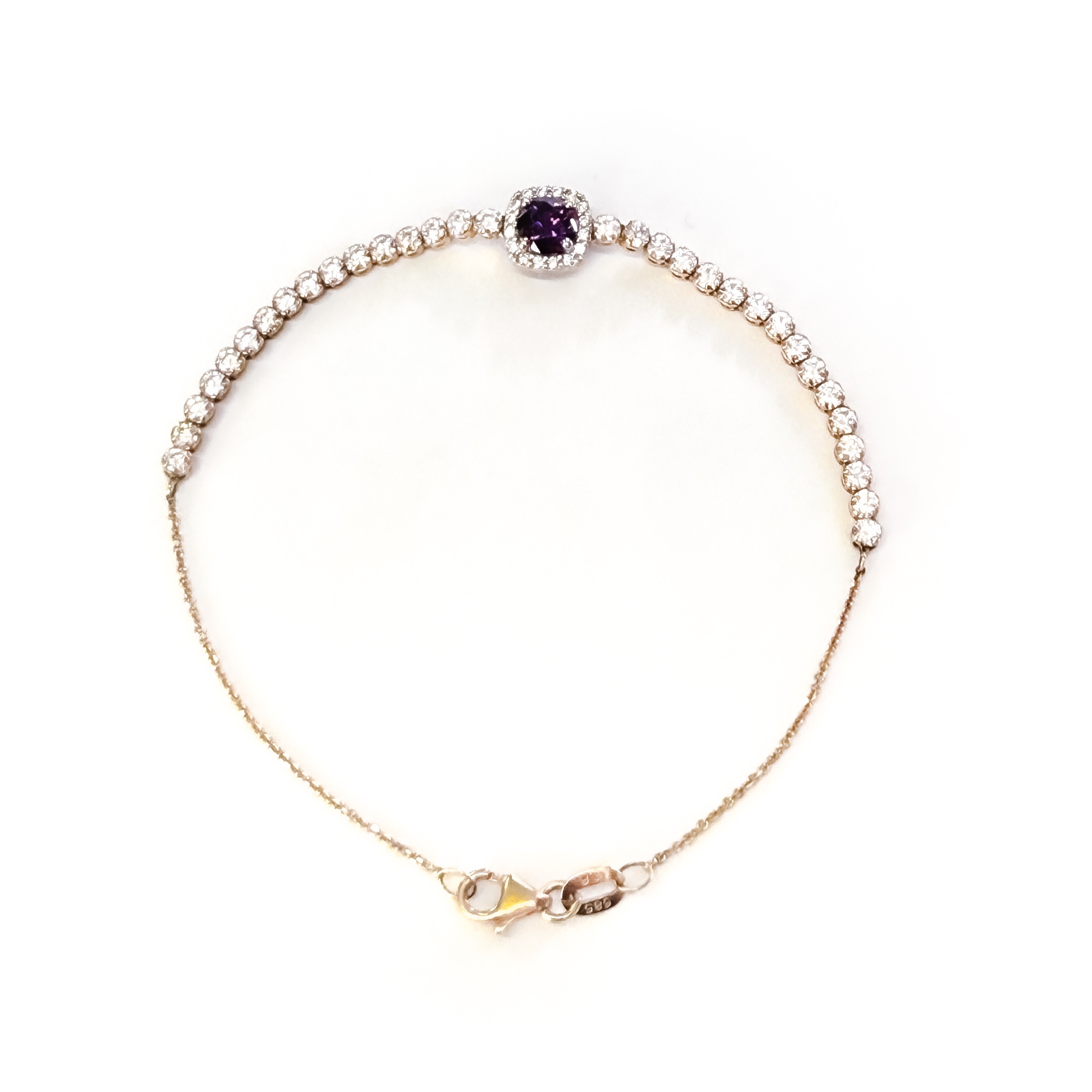 γυναικείο βραχιόλι από χρυσο 14 καρατίων.Ένα νεανικό βραχιόλι στολισμένο με μία στρογγυλή ροζέτα σε μοβ χρώμα.