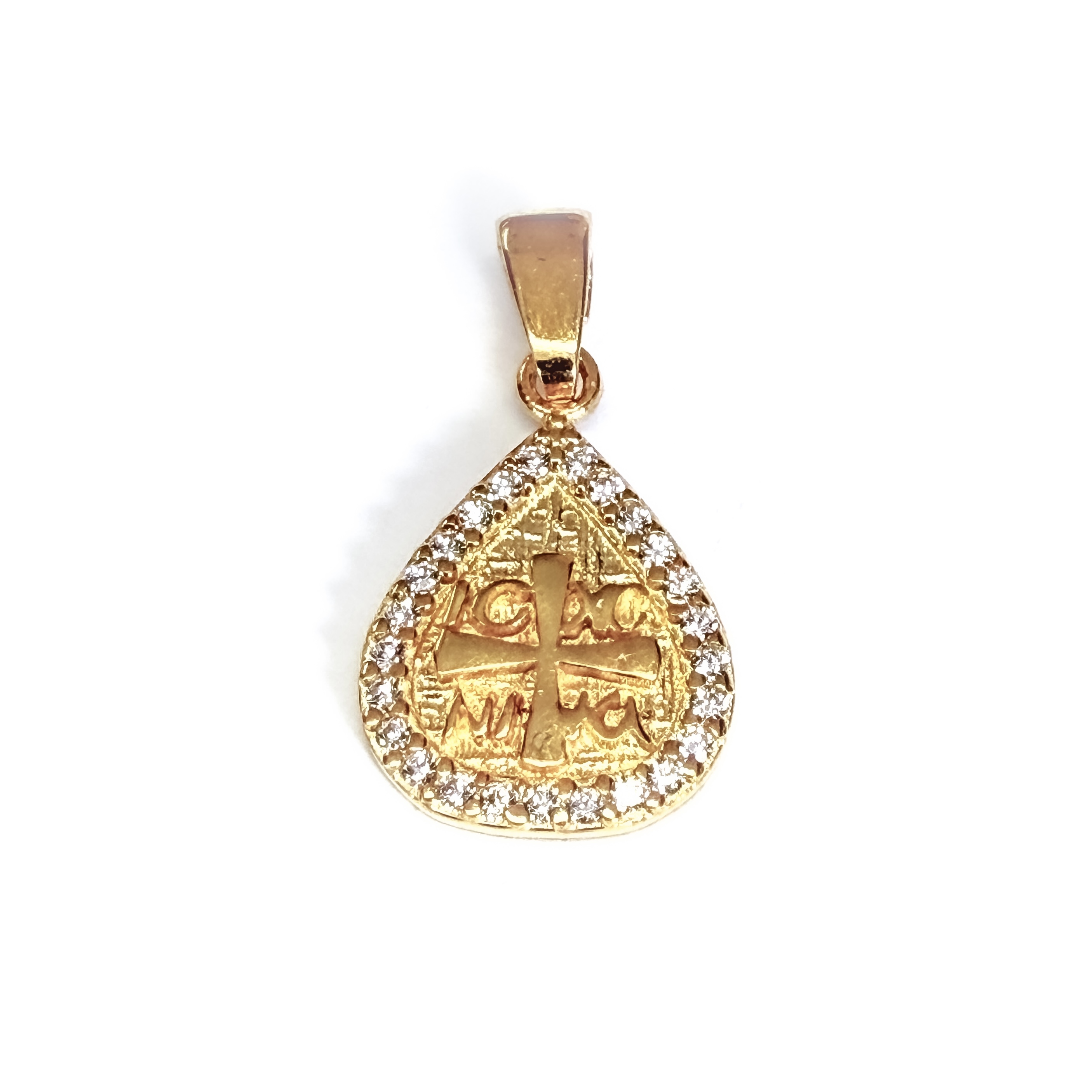 Χρυσό Μενταγιόν Κωνσταντινάτο 9 καρατίων με πέτρες Ζιργκόν περιμετρικά
