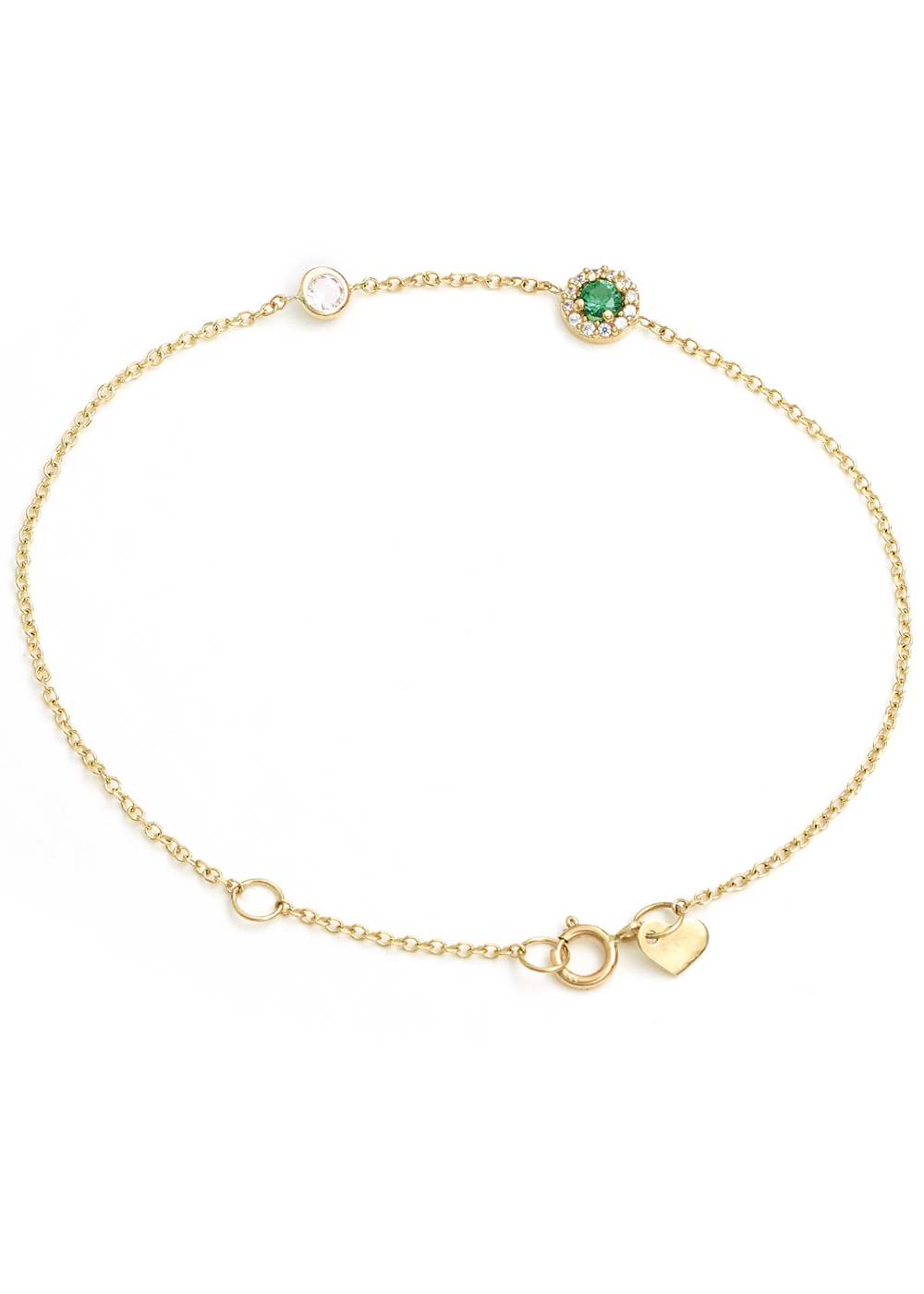γυναικείο βραχιόλι από χρυσο 14 καρατίων.Ένα νεανικό βραχιόλι στολισμένο με μία στρογγυλή ροζέτα σε πράσινο χρώμα και ένα καστονι με ζιρκόν.